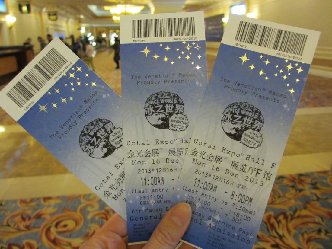 纖茹發現這次來澳門似乎很多東西都是「免費」 這次搭乘澳門航空來恰巧碰到贈票活動 憑登機證就可以免費兌換冰之世界門張一張喔! 真的是賺很大~ 我拉著正在賭場大賭的老哥、老爸前往威尼斯人 欣…