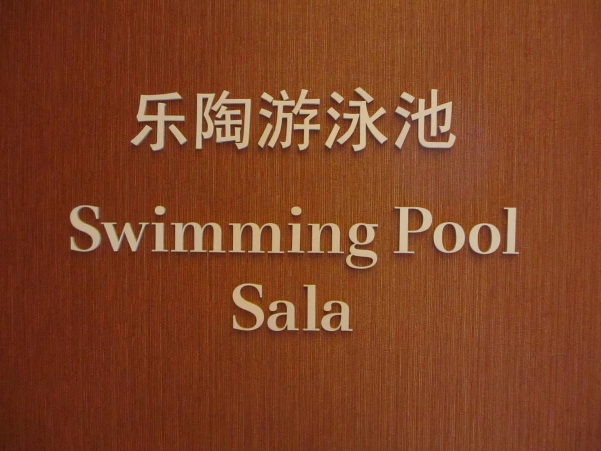 在澳門喜來登金沙城酒店 游泳池一共有三個 但不是每一個天天都有開放 今天我們來的是「樂陶游泳池」 在未進入泳池前 三根木頭大花灑,下泳池前記得稍為沖一下 讓泳池更乾淨 讓自己有禮貌、尊重…