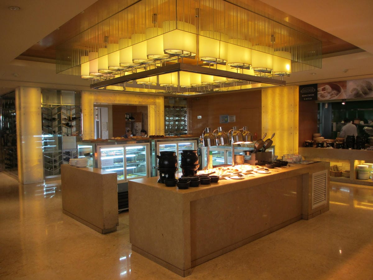 住宿含早餐 萬麗的早餐不知道如何?看了就知道! 冷盤 有火腿肉、雞肉薄片、煄魚(可是不是鮭魚) 生菜沙拉 超有誠意的這一區蔬菜最少有10-12樣 連醬料都有7種耶! 芝士盤 上海不少金髮藍眼 這個…