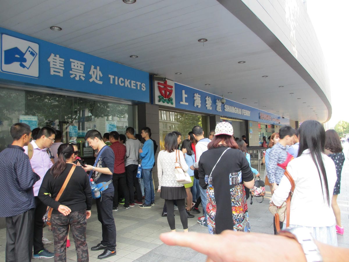 外灘散步 準備來上海搭渡輪 買票是導遊哥哥的事 我們就是等著讓他服務就行啦~ 看到這個牌子看來對岸的同胞很公平 不止外國遊客容易被騙、國內遊客也要小心喔! 看標語就知道 上海輪渡 說法恰好…