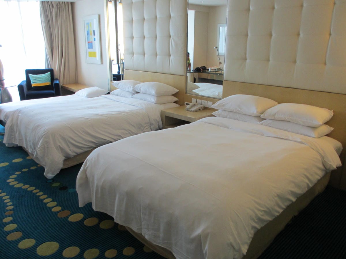 雙人兩大床 有賺到的感覺耶! 入房映入眼廉的第一印象很重要 雙人兩大床整體感覺就是一個字「爽」啦! 纖茹最愛的就是床頭還有這頭等艙、商務艙相同的床頭燈 晚上睡覺前無論想要滑手機、看雜誌…
