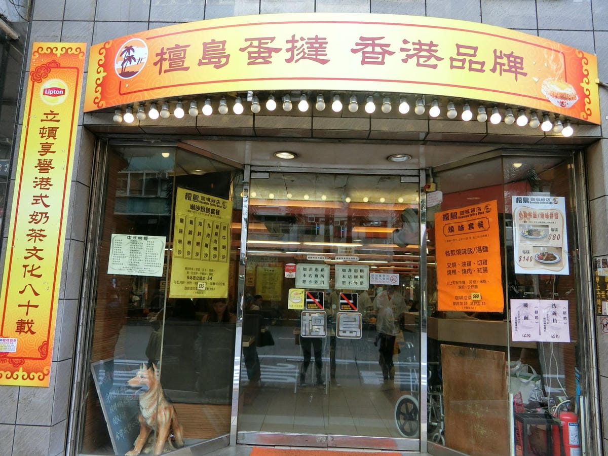 吃完正餐要吃甜點 這樣的安排很正常吧?! 就在甘牌燒鵝走路約5分(往地鐵灣仔站方向) 姐姐說要帶我們吃蛋塔 (抱歉~走廊太窄無法再後退了…門面拍歪啦!) 跟甘牌燒鵝比起來 檀島咖啡餅店空…