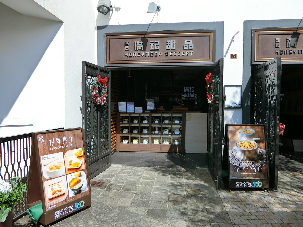 中式古色古香的滿記甜品 是昂坪店獨有的! 店家的座椅是圓桶型狀 木色系的地方像不像古老豆花桶? 灰色部份為了讓客人坐來舒適 採用彈簧沙發椅 店家的牆面用了整面的書牆 不知情的人還以為這裡…