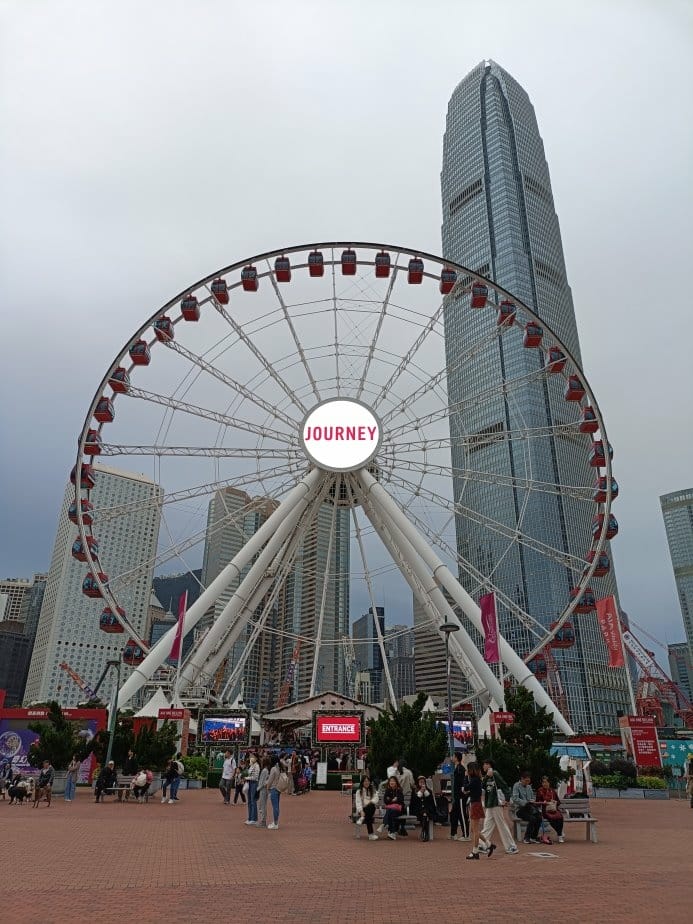 吃飽喝足 開始我們緩慢的移動腳步 搭乘地鐵到中環站A出口延著民耀街走 約走10~15分鐘就可以抵達 中環最新的觀光景點 「香港摩天輪AIA Vitality 公園」 嗯…今天的天氣是陰天… 拍不了那藍天白雲…
