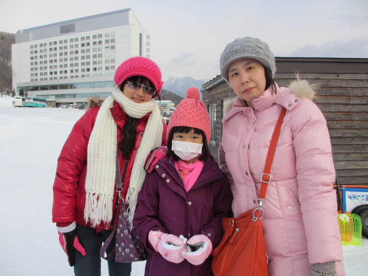 大家有沒有覺得我們身後的那一棟建築物很眼熟呢? 眼尖的朋友一定會發現 它就是我們第一天住的高倉溫泉雫石王子溫泉飯店 還記得嗎? 這裡本身就是個滑雪場 今天的雪樂園也被安排在這裡~ 中間的…