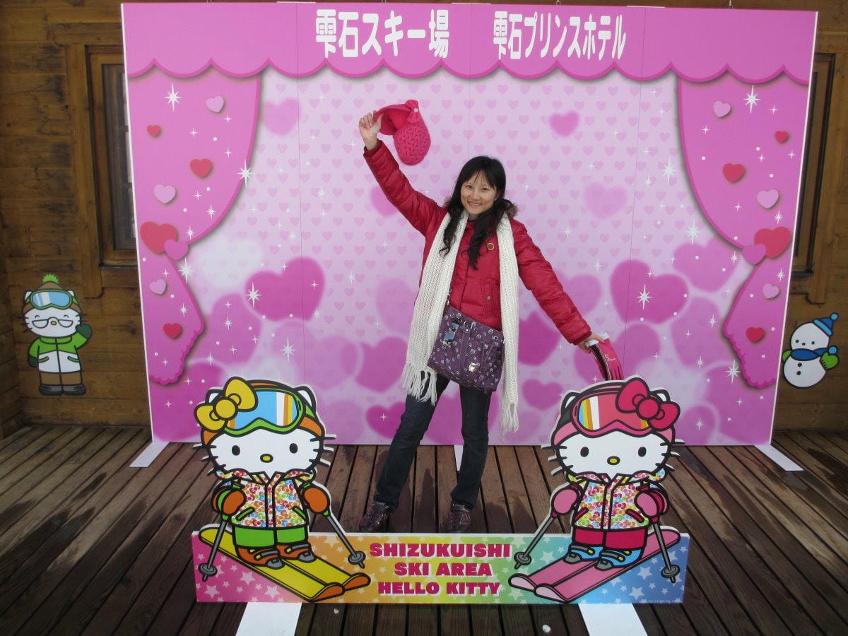 在Kitty小木屋前面 還設有一個大大的ki板 讓你可以在這裡照相留念喔~ 日本的招財貓可是「左招財右納福」 我們全都包! 即招財也納福~ 要雙喜才行~ 在小木屋的入口處 還有kitty滑雪的英姿 帥吧?…