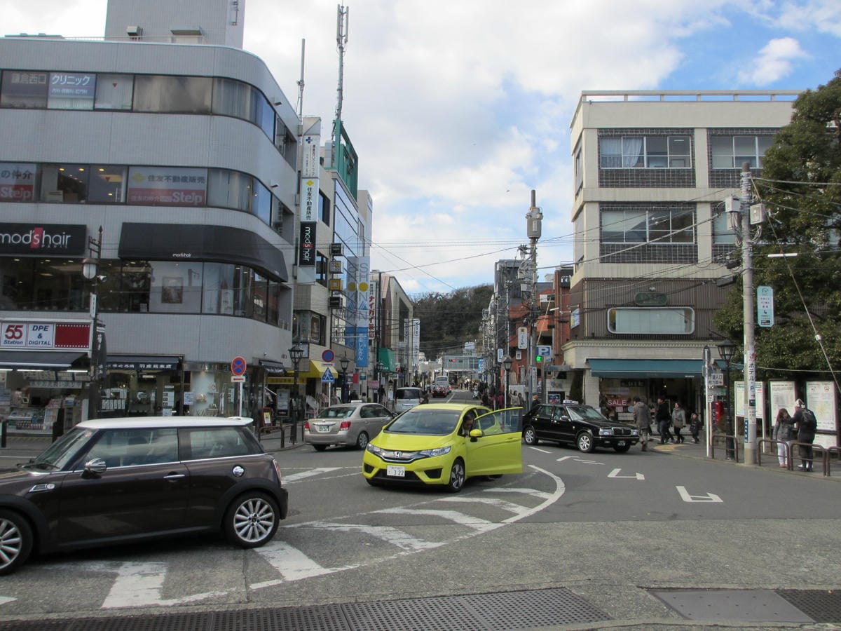 走出江之島電鐵鎌倉站 看到的街景不同於新宿、不同於箱根 鐮倉是一個效區小都市 少了一分商業氣息、多了一分親切 好香!香氣從何而來? 出了車站的右手邊就有一家在賣鯛魚燒 跟我們一般看到的好…