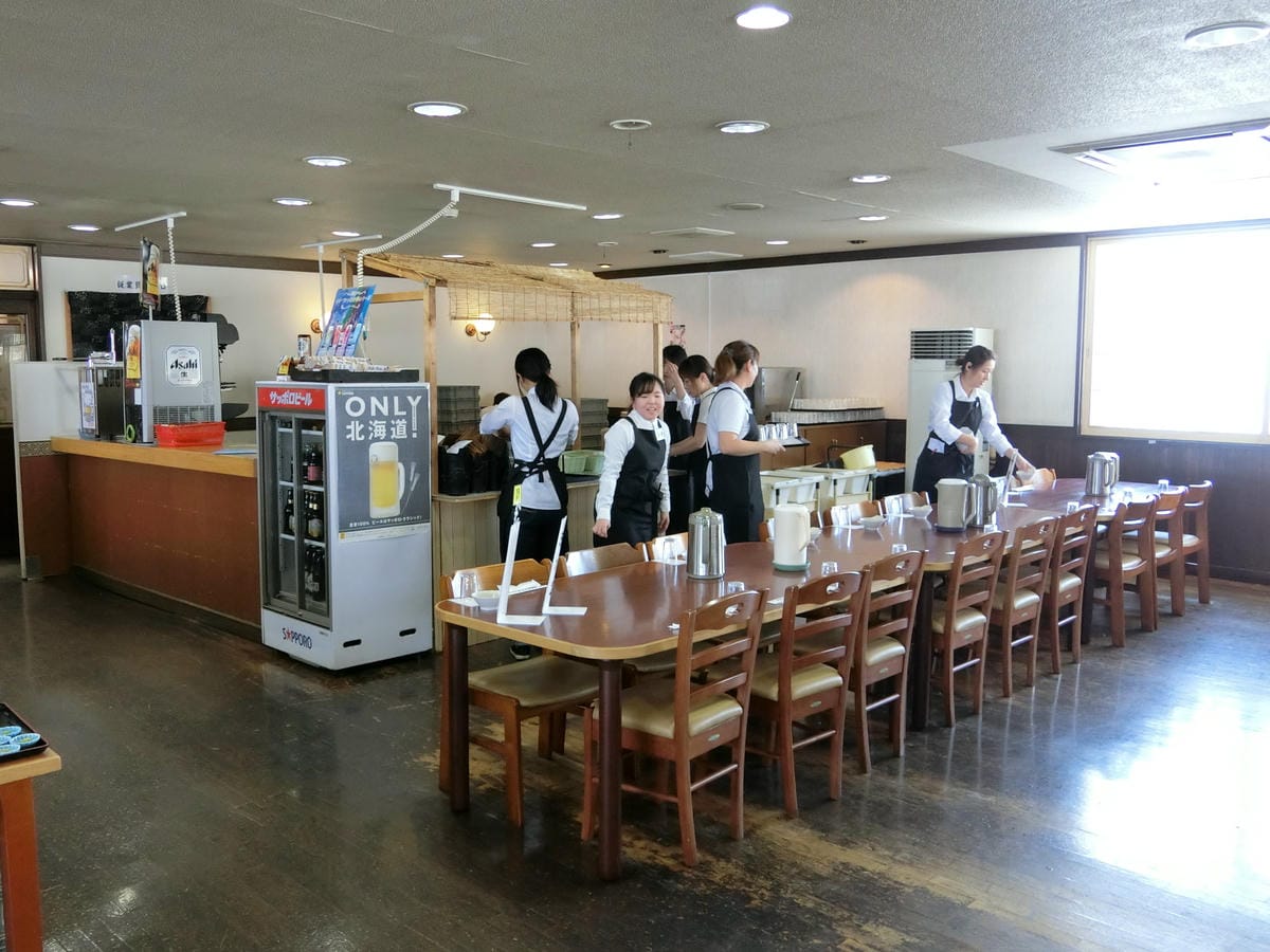可留茶屋俱樂部 今天中午用餐地點就在網走流冰船的附近 方便等會用餐完就近搭船 這裡提供許多團體用餐 纖茹有小心機,左看右看大家的菜色是否一樣? 不一樣喔~還是有餐標的價差喔! 一碗白飯 炙…