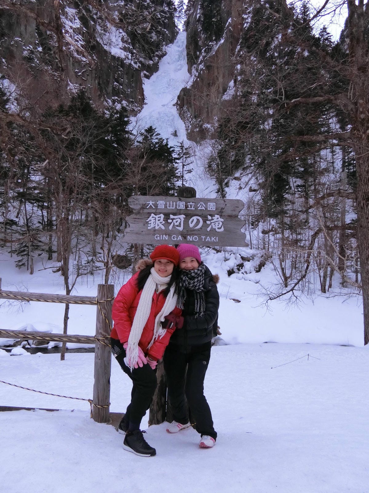 銀河瀑布(銀河の滝) 不要問我瀑布在哪裡? 就是纖茹和大姐身後那條已經變成「雪條」地方 因為氣候的關係已經「結凍」 現在的時間約下午4:45~5:00左右 下一個目標就層雲峽冬天最主要的一個活動…