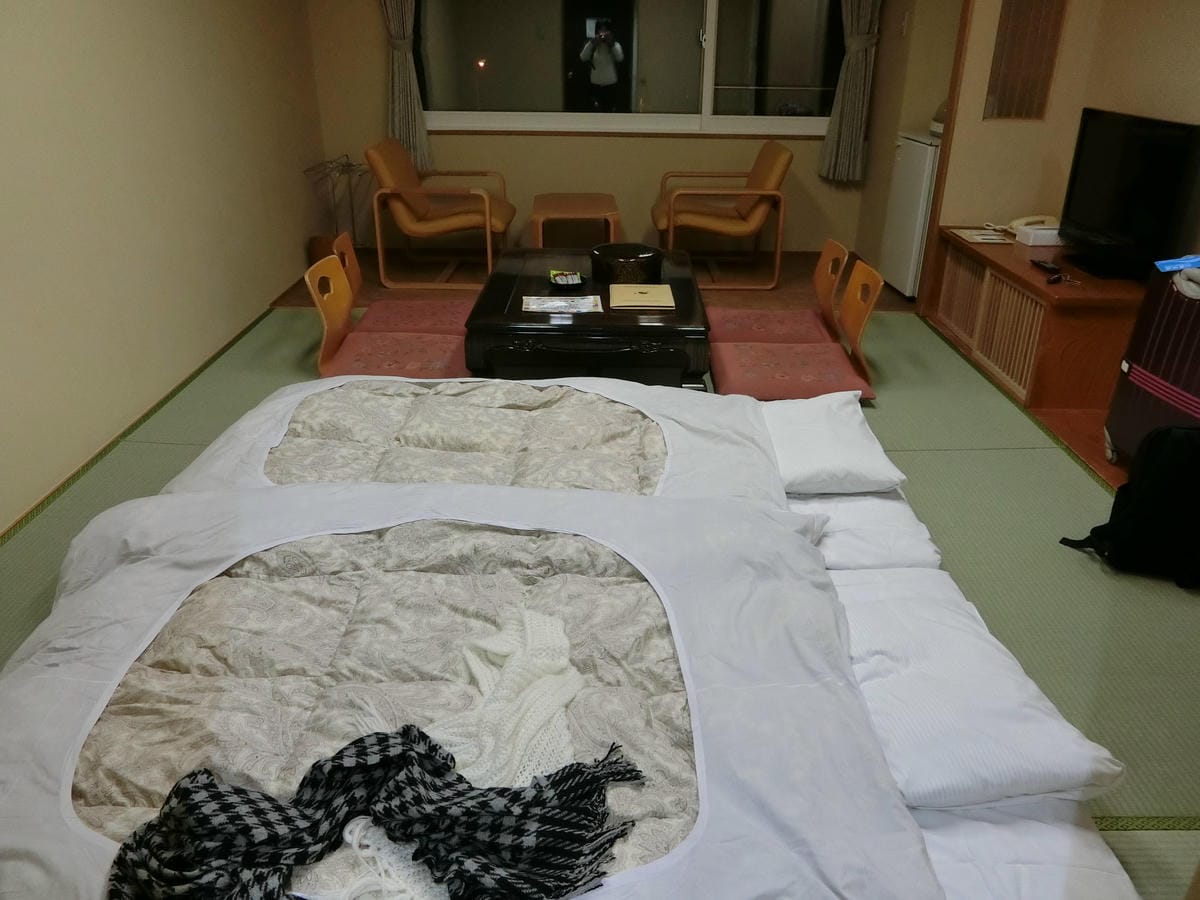 吃飽回到房間 這才發現夜間舖床的服務早就已經準備就緒 溫泉飯店還是睡榻榻米最搭配! 昨天晚上在阿寒湖花優香睡的是和洋式房 纖茹和大姐還是偏愛純榻榻米的房間 房間更大更寬敞 舖軟墊在榻榻米…
