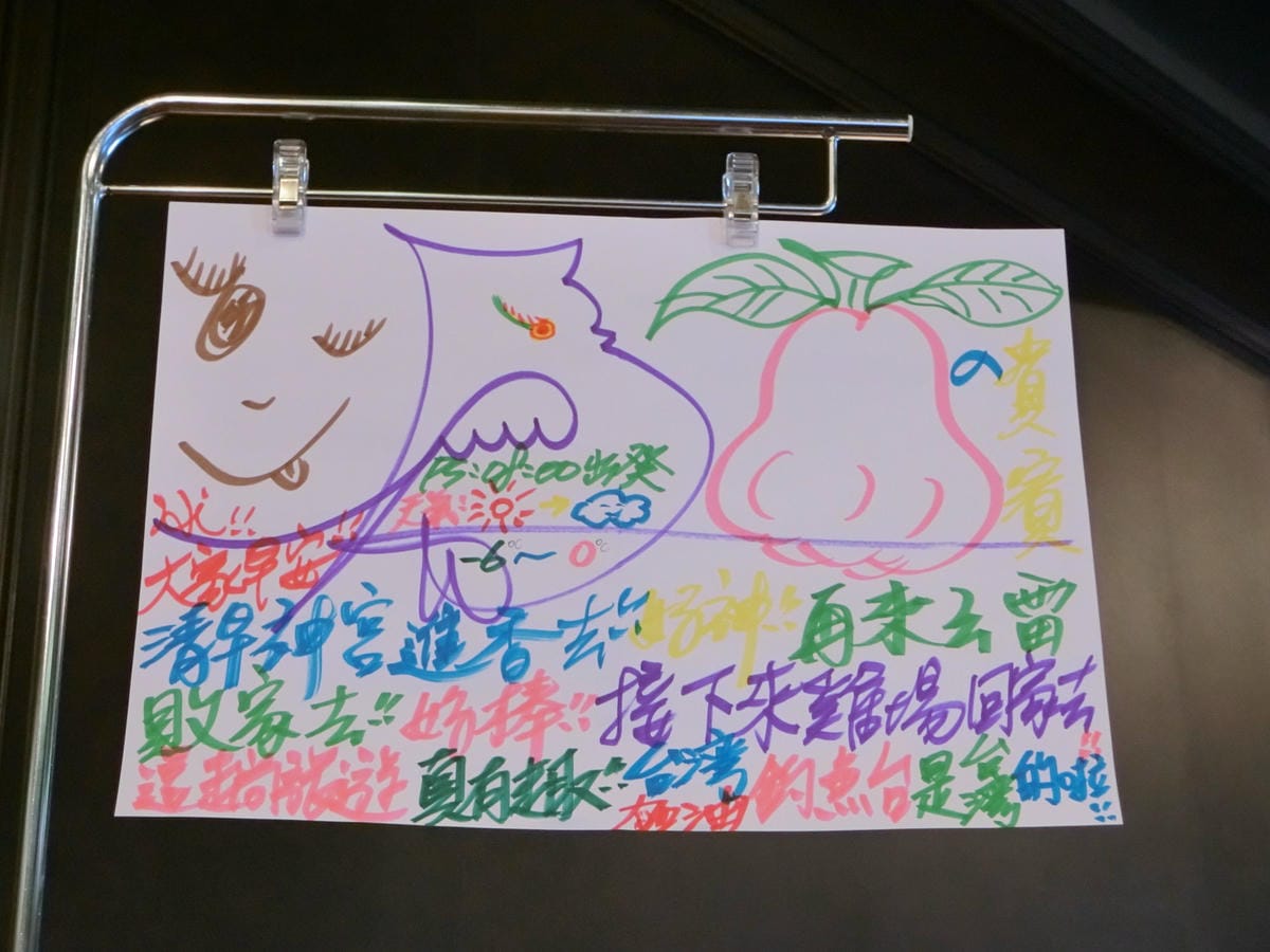 看看我們的蓮霧大哥多有才華? 每天都的自己畫一張獨特無法取代的集合牌 要找不到或找錯都好難喔! (每天都有團員要求留做紀念搶手的很呢!) 今日在北海道最後一站:「北海道神宮」 大大的灰色鳥…