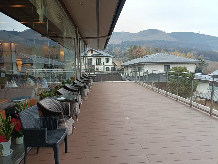 今晚我們要在由布院住一個晚上 我選擇了一間位在山上而非在由布院主幹道的飯店 訂房間的時候就可以跟飯店預約接駁車 飯店會在指定時間至由布院車站接你喔! 朝霧之宿由布院花由(朝霧の見える宿 …