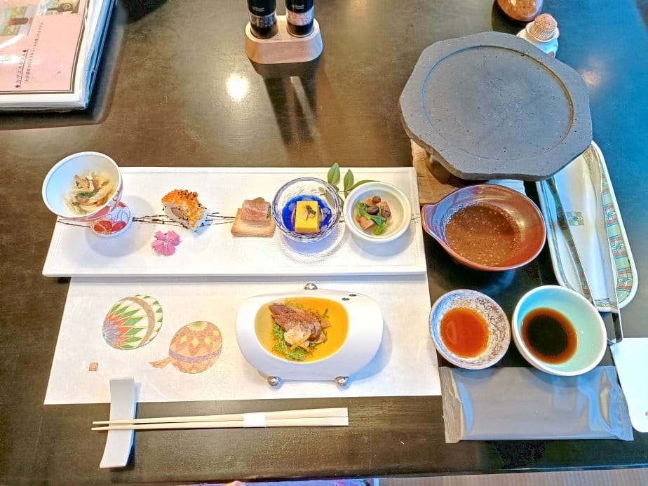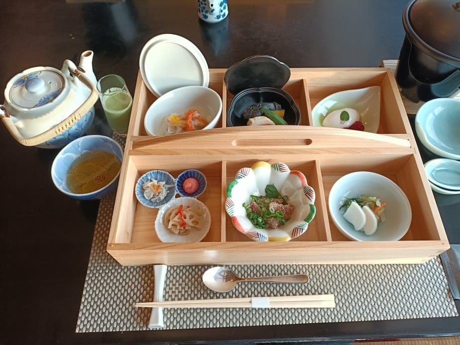 今天我們的晚餐是日式懷石料理 來入住之前,網上的風評也是極好 半開放式的榻榻米包廂空間 讓人有自己獨立用餐的舒適感 唯一的缺點就是它是「真的」榻榻米 腳沒有往下挖洞可以放… 桌上每…