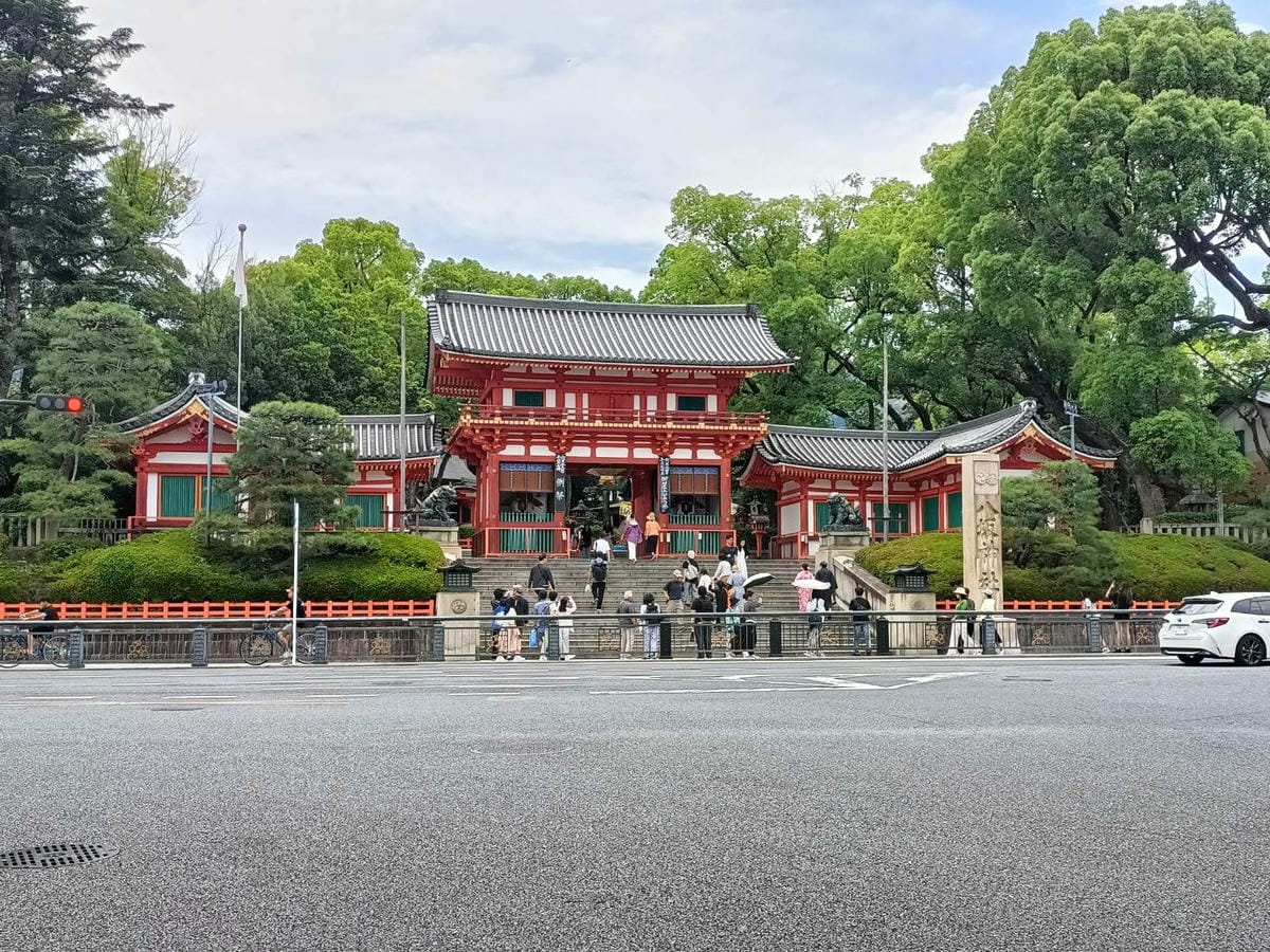 八坂神社 我已經是第三次來拜訪,學妹則是人生頭一糟! 我們依舊有碰到祭點 神社外都有擺設一些屋台賣著各式日式小吃、日式小物 上頭掛的「厄年表」就有點類似我們台灣安太歲 哪一年碰到哪一年…