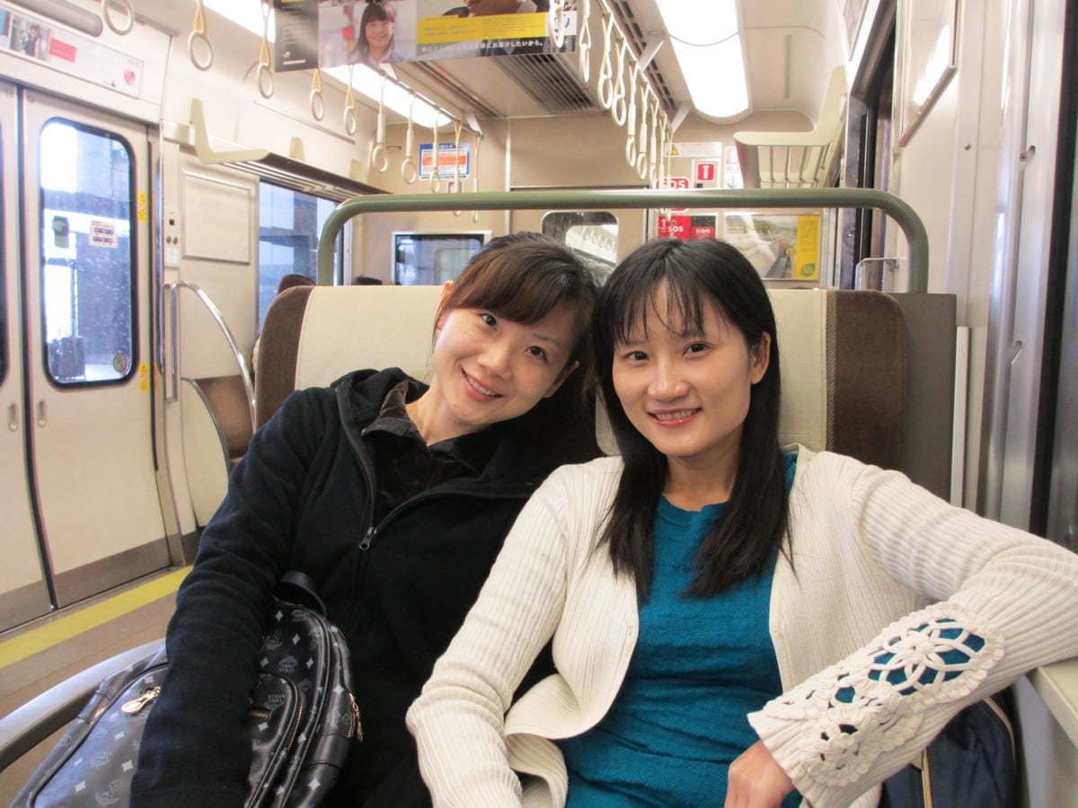 從難波搭御堂筋線至梅田站 轉搭JR線從JR大阪站到達JR京都站(最快30分鐘就可抵達) (地鐵名稱為梅田、JR為大阪站屬同一站,室內就可換線) 一開始只有我們兩位女孩們有坐位 這兩位大男孩就像…