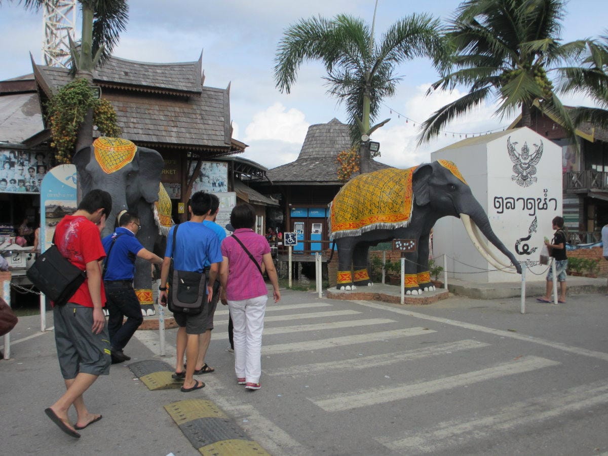 吃完無敵海景希爾頓下午茶 我們來到來泰國必來的水上市場 親自感受一下泰國的獨有風格的市場 這個位於芭達雅的「四方水上市場」 是於2008年最新開幕的水上市場喔~ 到這裡當場一定要搭一下水上…