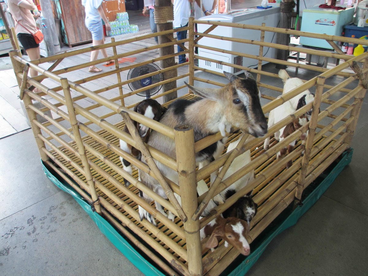 一上岸我們就看到好可愛小羊仔 用它們渴望的眼神請我們一定要給它們東西吃~ 這麼祈求的眼神誰看到了都嘛會心軟?! 誰受的了嘛… 當下立刻拿錢去買牛奶的就是大姐啦! 這樣一個小奶瓶大約裝…