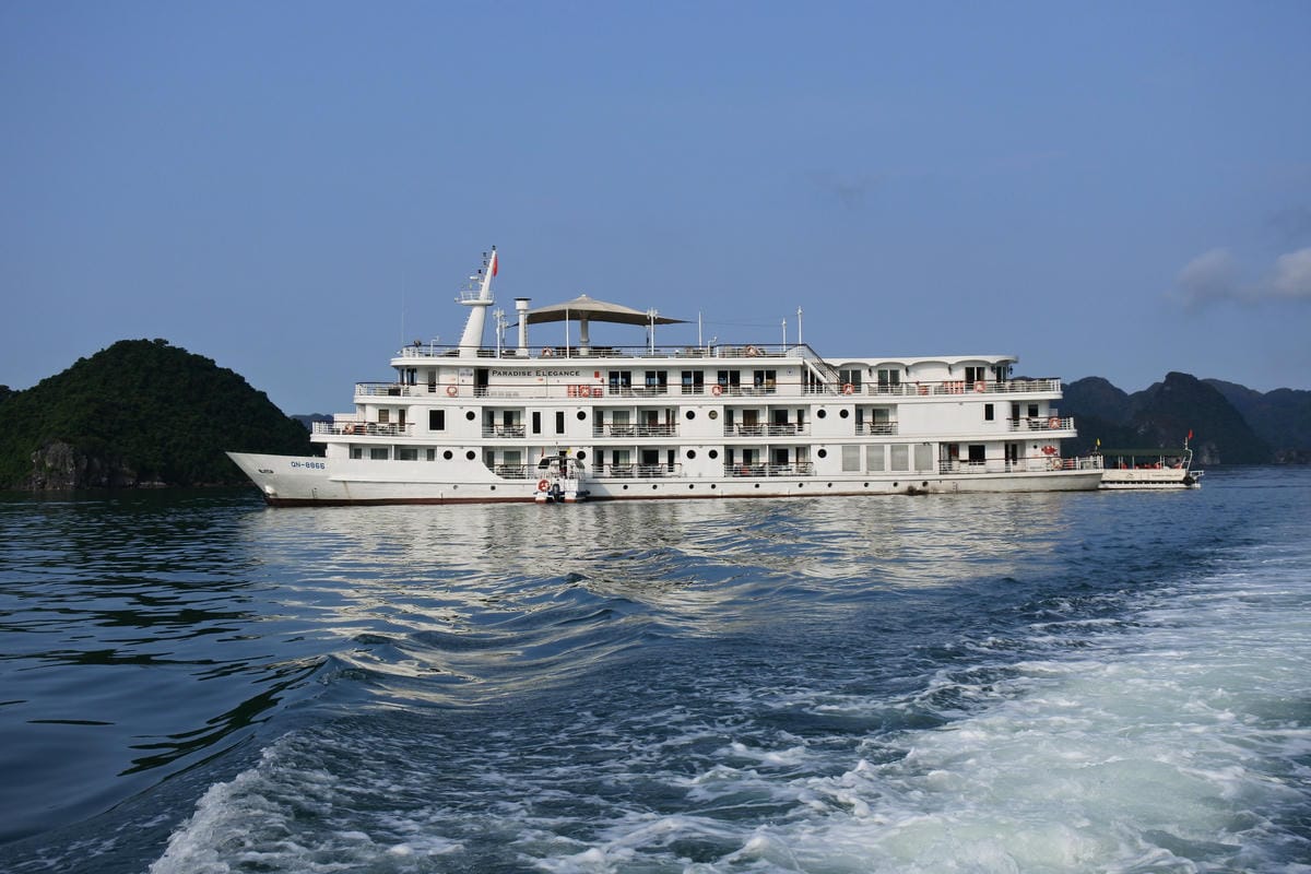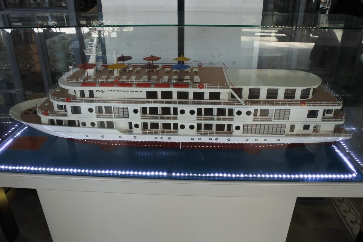 下龍灣遊船有許多船公司 我們搭乘的是天堂郵輪公司 天堂船隊有專屬的候船室 穿著傳統越南服飾的服務員 站在大廳為各位服務 外頭夏日高溫 在候船室裡面吹著涼爽的冷氣 享用簡單的mini bar點心 …