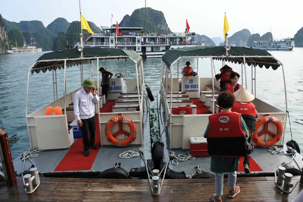 前往Hang Sung Sot驚訝洞 可不能整船開過去,那可是無法靠岸的 每艘船都有2般小船可接駁乘客至小島遊玩 船程約10~15分鐘左右 雖然船行很短暫 該有的安全措施不可少,救生衣是一定要穿上的喔! …