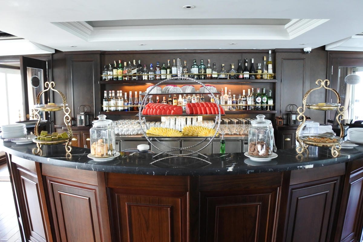 從驚訝洞回到船上 正好累又渴 下午茶已經幫我們準備就緒 水果有西瓜跟鳳梨 有類似台灣綠豆糕的糕點 還有約3款不同口味的蛋糕 口味上普普 補充體力還行 飲料部份就非常單薄 只有英式熱紅茶 …