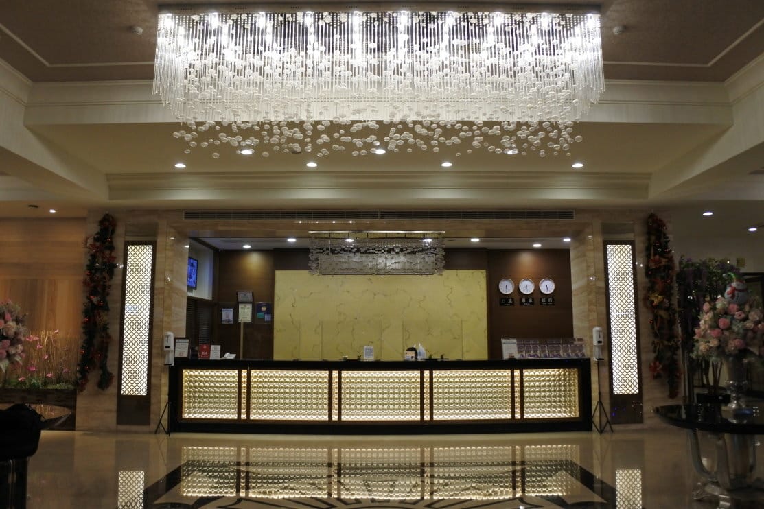 今埔里渡假大酒店 大廳不大~卻很氣派! 整排的水晶燈讓飯店更添氣質 我們來的時候恰好是12/25 大廳的聖誕樹讓節慶的氛圍更濃 大廚的人型立牌就放在大廳 看來~晚餐是值得期待的喔! 飯店人員親切…