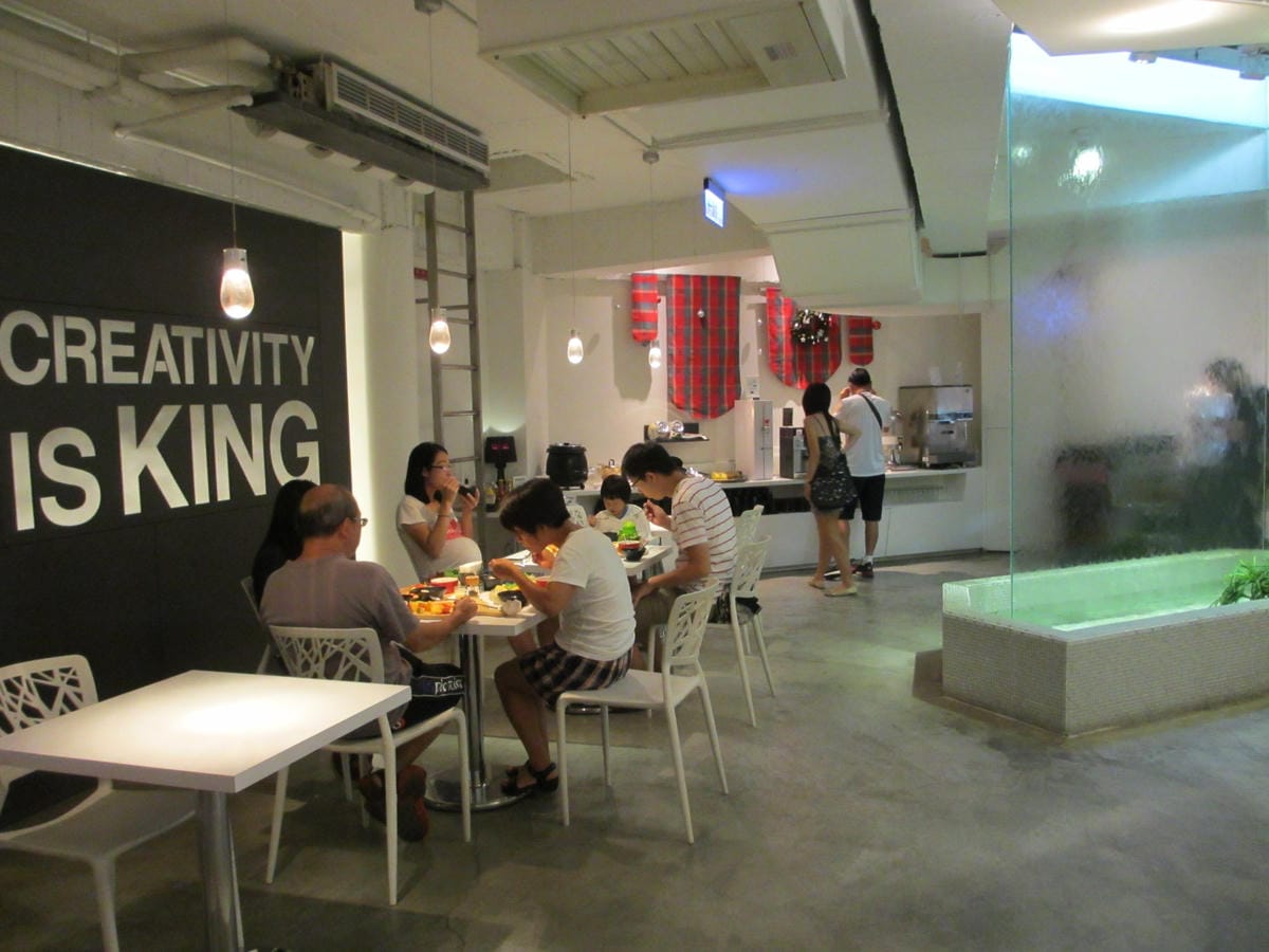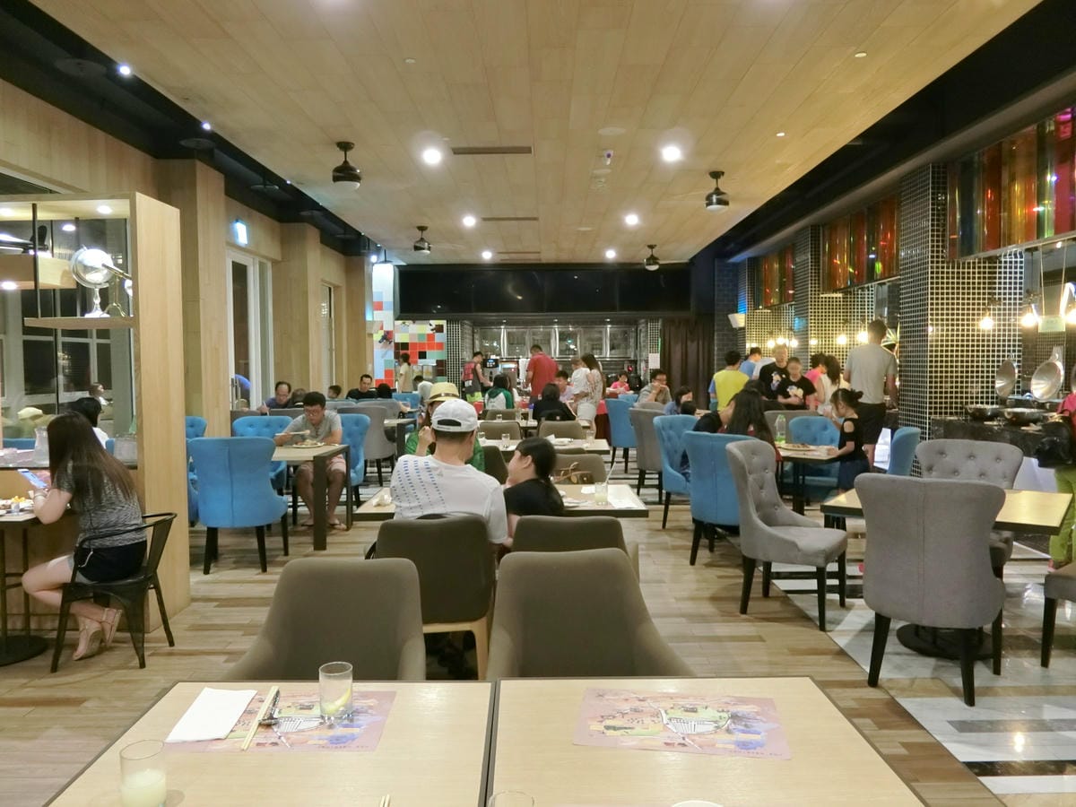 出門遊玩就是要早起~ 早上8:00起床準備來吃飯店的早餐 看來比我們早起的人可多囉~ 餐廳位於飯店的地下一樓 空氣上來說不算太糟… 只是如果冷氣不強的情況下就會覺得悶囉! 創意旅店的定義…